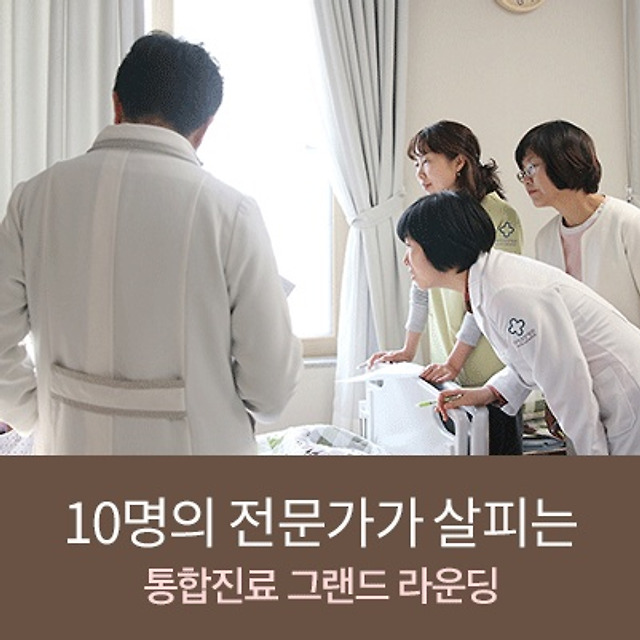 요양병원 통합진료 그랜드 라운딩 시스템 “10명의 전문가가 부모님의 마음까지 헤아립니다” 대정 요양병원의 양, 한방 의료진, 간호팀장, 영양사, 물리치료사, 수간호사, 사회복지실장 모두 모였습니다. ^^ 요양병원 대정만의 통합진료 그랜드 라운딩을 하는 날이지요. 밝게 웃으며 부모님께 인사를 드리고 진료를 시작합니다. 요양병원 대정병원의 통합 진료 그랜드 라운딩은 10명의 각 분야 전문가들이 부모님 한 분 한 분을 케어하는 시스템입니다. 부모님이 건강을 되찾으시기 위해서는 치료 뿐 아니라 먹는 음식, 운동, 이빨 건강까지 세세하게 보살펴드리는 것이 중요하기에 모든 부모님들을 각 분야의 전문가들이 다 찾아뵌답니다. “부모님의 마음에도 귀기울입니다” 그랜드 라운딩은 부모님들과 다양한 이야기를 나눌 수 있는 시..